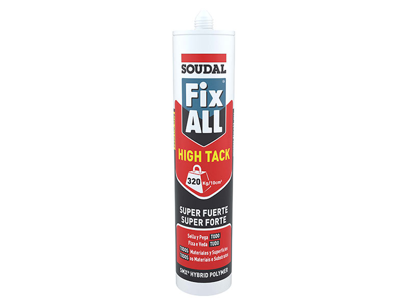 El sellador Fix ALL High Tack es un sellador adhesivo a base de Polímero Híbrido MS de impresionante agarre inicial, no contiene solventes, pintable, pega casi cualquier material de construcción común. Pega incluso en presencia de agua o humedad.